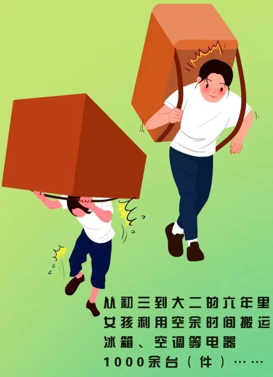 東楚晚報也在第一時間采訪到了這位背冰箱的女孩,她叫曹有緣,如今正在讀大二的她已經幫父親搬了整整六年的冰箱。