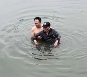 岸上有人朝老人呼叫“朝岸邊走”,老人卻沒有反應。岸上有位女士連忙撥打110,環衛工人找來兩根長竹竿,但因距離太遠而無能為力。緊急關頭,滕彩禮迅速脫掉衣服,飛快跳入湖中,連走帶游向湖中老人靠近。他先是從背后抓住老人衣服用力朝上提,借助水的浮力向岸邊移動。接著,滕彩禮將老人抱在懷里,向岸邊靠近。到了岸邊,兩位小伙子上前幫忙,將老人拉上岸。