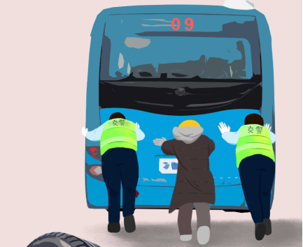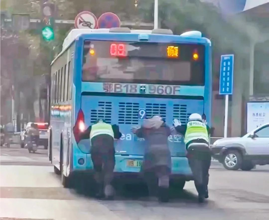本來,他們幾個人是無法推動公交車的,但此時公交司機經過搶修,恢復了車子的部分動力。他這才和交警一起,將車推到了路邊。