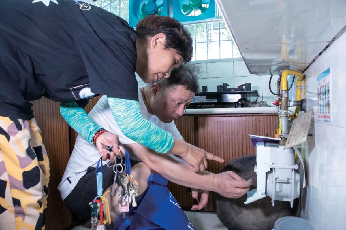 “唐媽媽家的燃氣表有些故障,你和我一起去看看?”7月30日上午,在開發區·鐵山區建設路社區礦一路22棟樓下,于文英撥通了居民李文東的電話。話音剛落,李文東匆匆下樓,與于文英會合,直奔老人唐雪霞家。